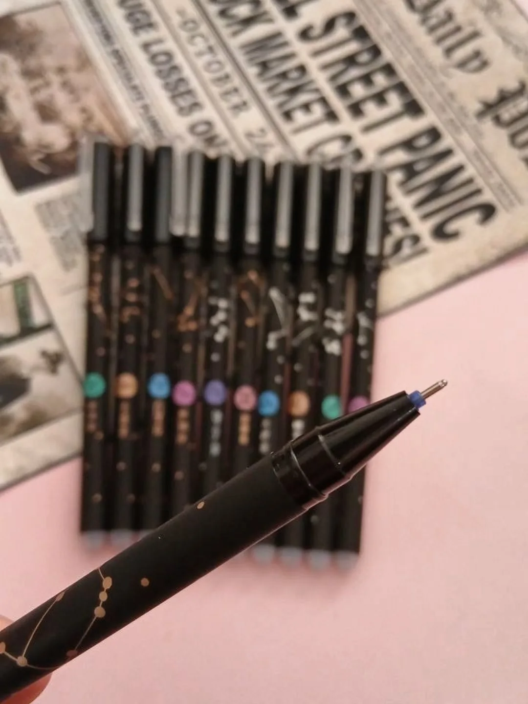 نوشتن با خودکار کهکشانی، پاکن دار یعنی لمس زیبایی کهکشان با نوک قلم! با جوهر آبی خوشرنگش و طراحی سمبلهای ماهها، هم کاربردی هم خاص!