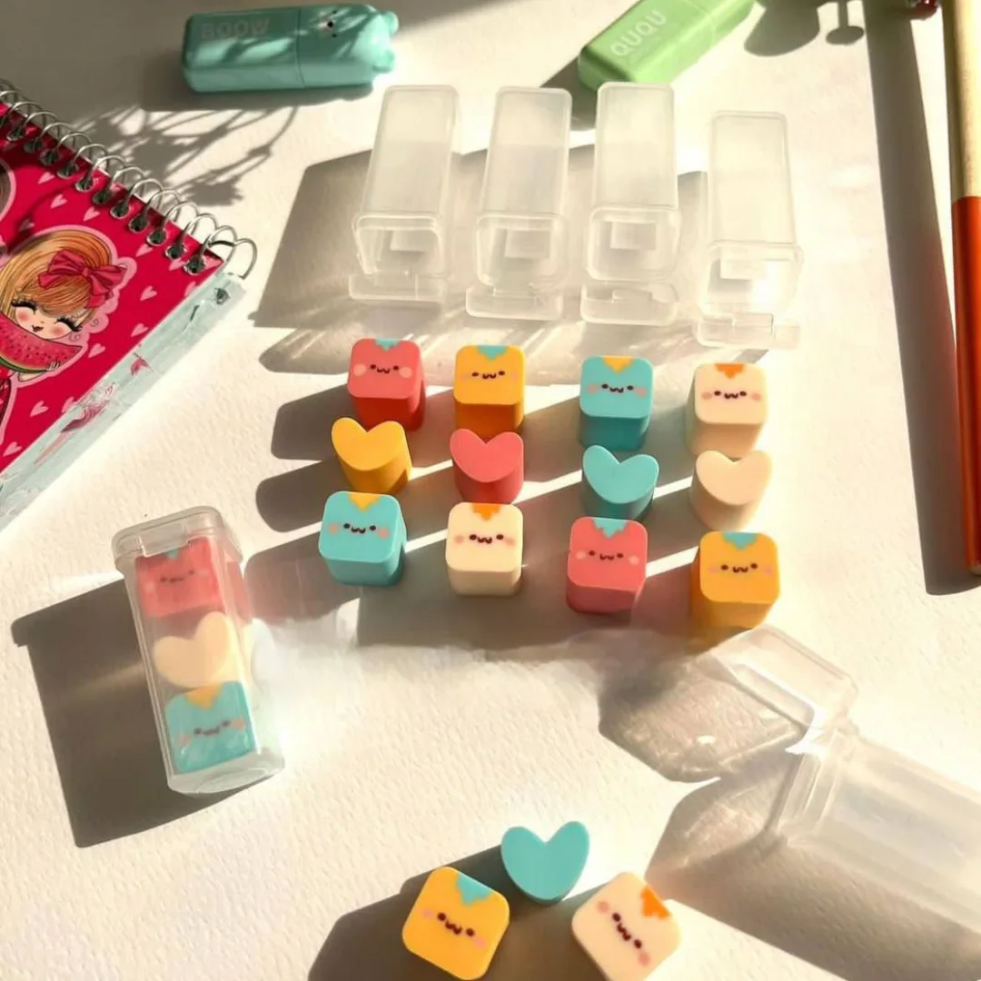 پاکن فسقلی ترین پاکن دنیا تو جعبش ۳تا پاکن داره دوتاش اموجی هست یکیش قلب رنگای مختلف داره.